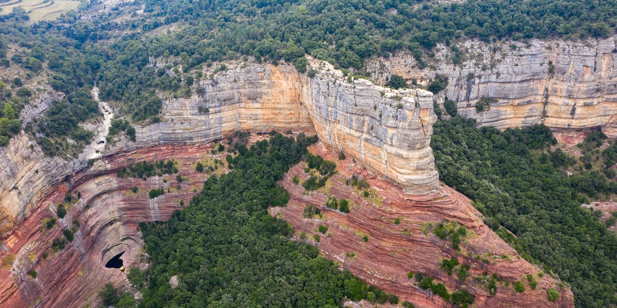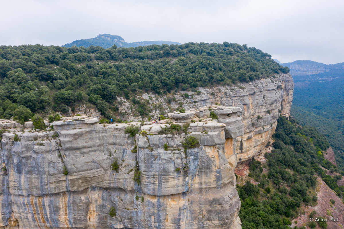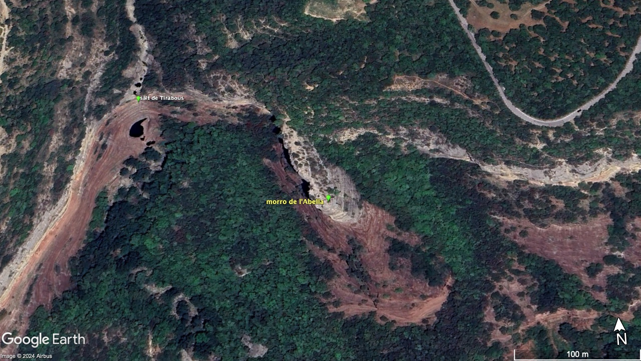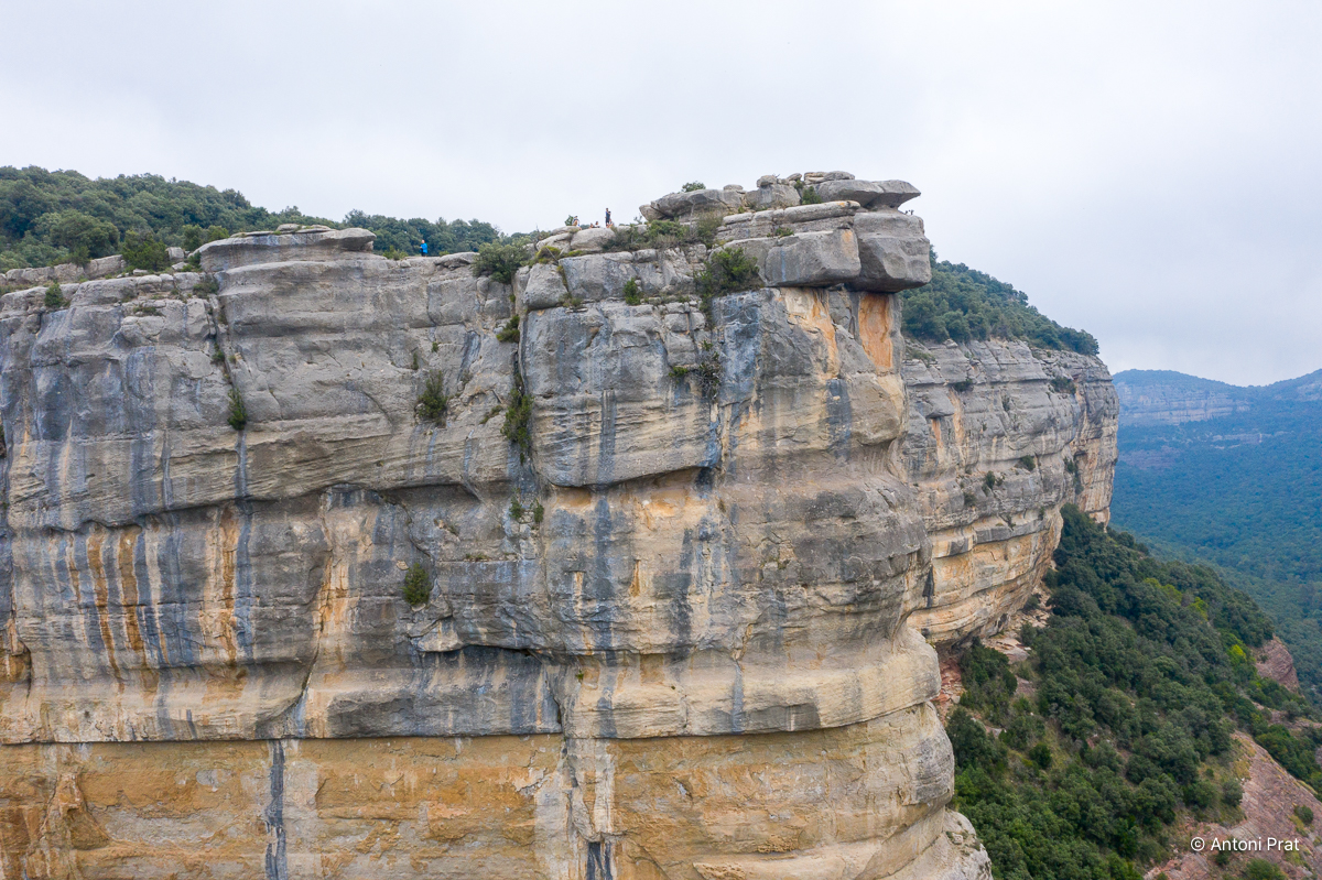 Des de la seva talaia es pot disfrutar de la vista del salt de Tirabous. Si, a més, tenim la sort que el torrent del Noguer porta aigua, l’espectacle de natura és d’una bellesa sublim.