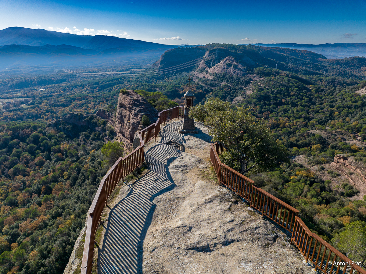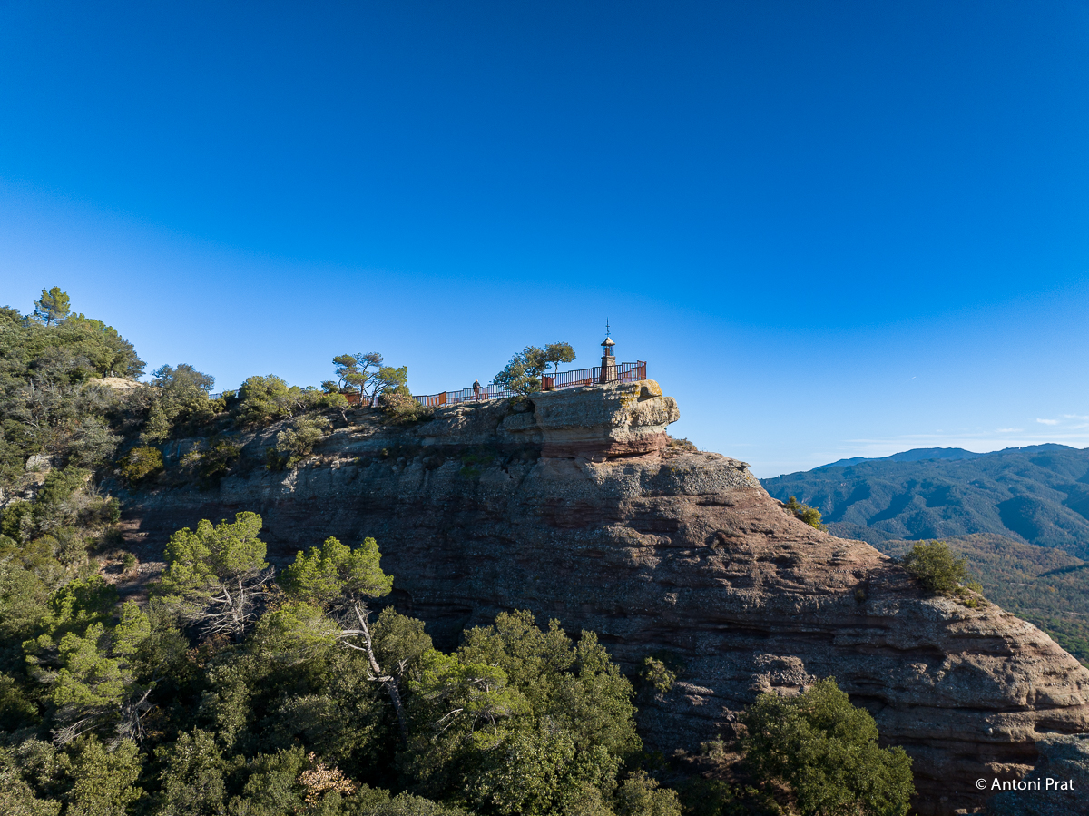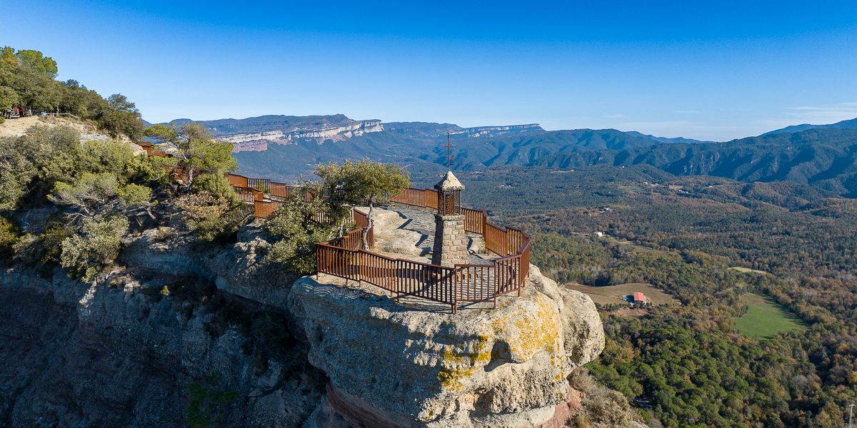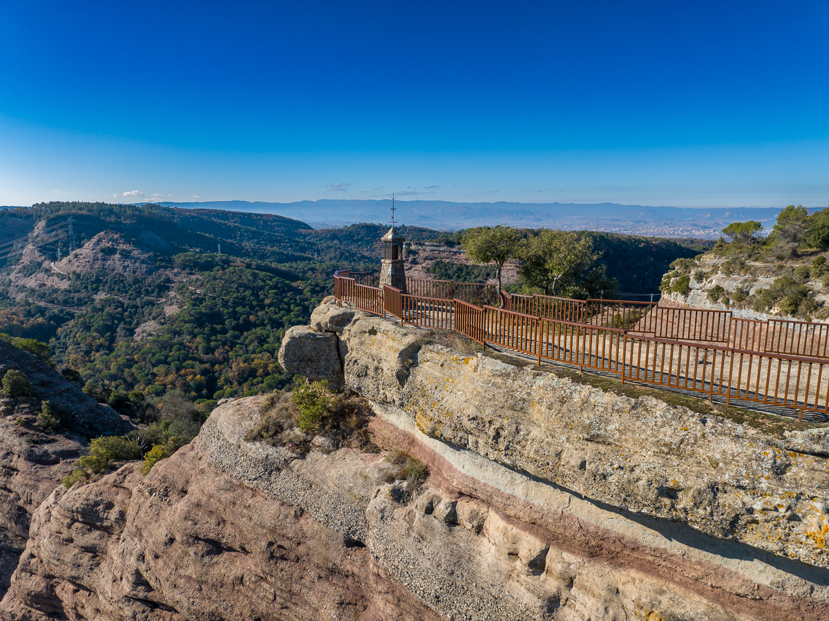 Aquest escarpat mirador ens ofereix una de les vistes panoràmiques més impressionants de l’Espai Natural de les Guilleries. S’hi veu parcialment el pantà de Sau, els cingles de Cabrera, el pla d’Aiats, Tavertet, el Far, la vall de Sau, i el Montseny amb la silueta característica de les Agudes i el Matagalls. A la punta més avançada del mirador, guardant aquest meravellós paisatge, es troba la Verge dels Cingles.