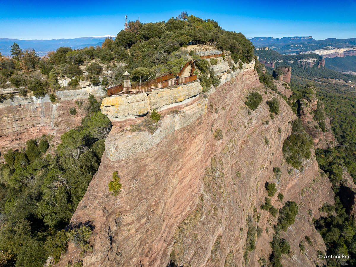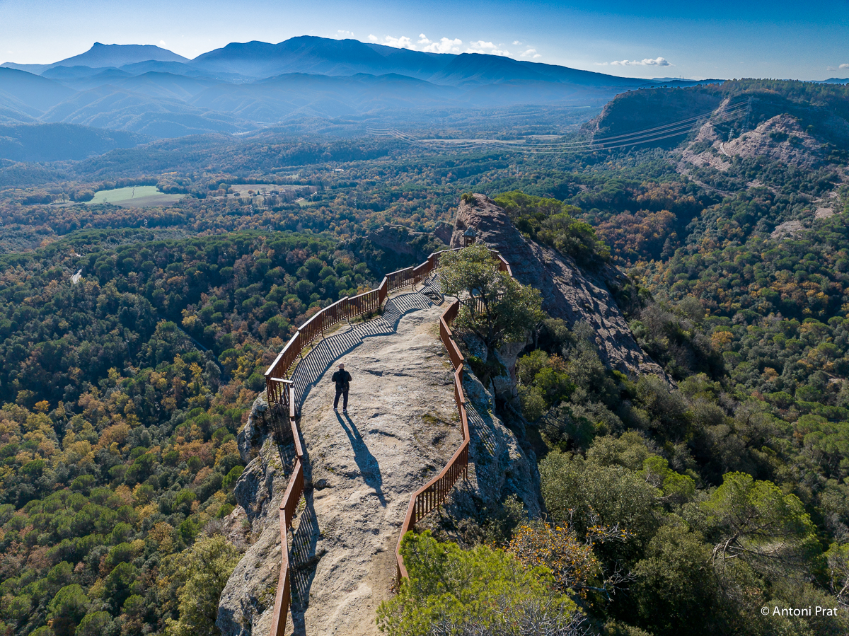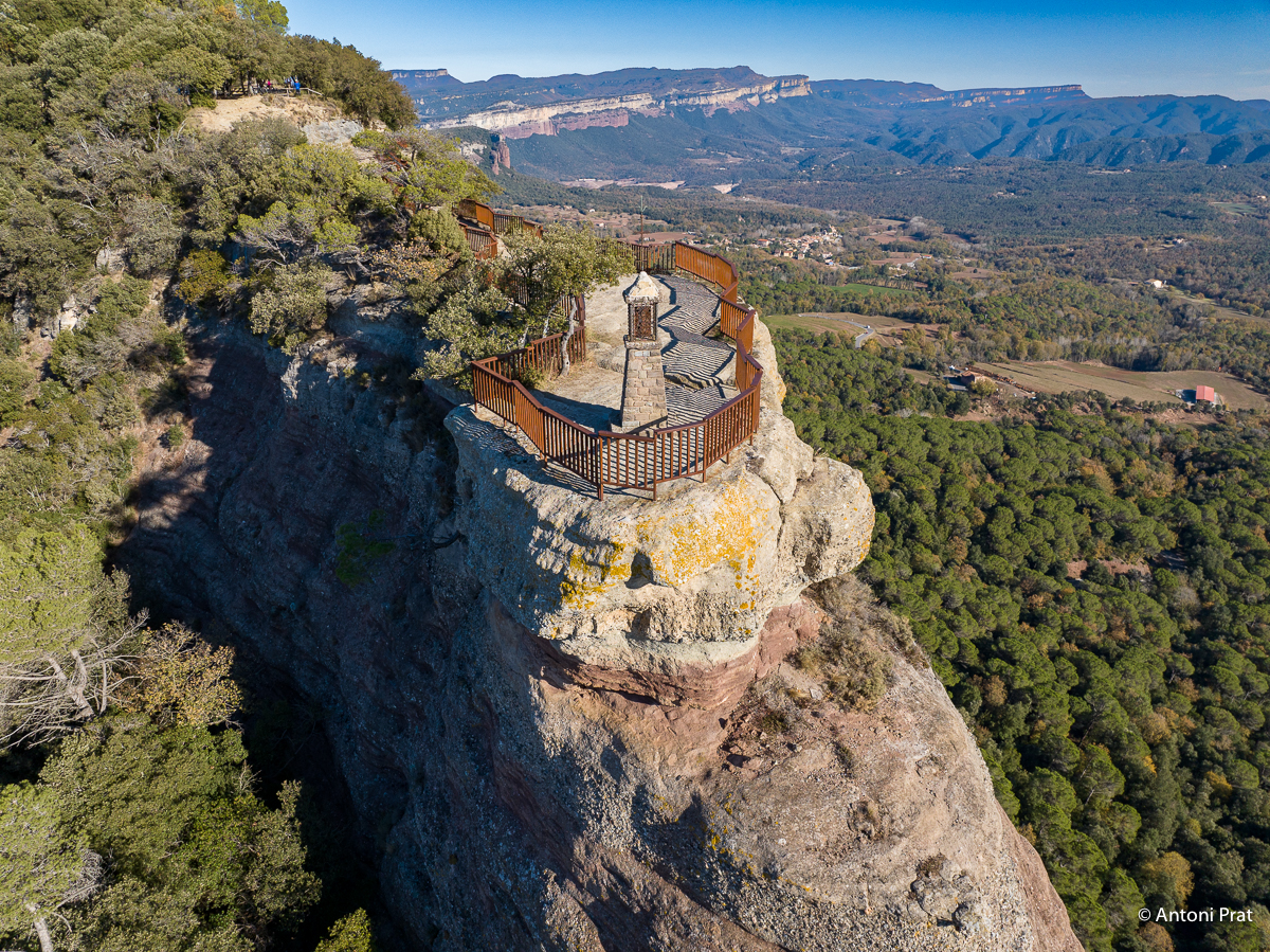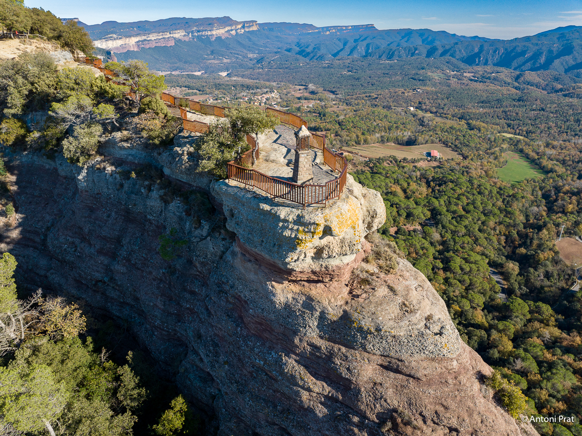 Aquest escarpat mirador ens ofereix una de les vistes panoràmiques més impressionants de l’Espai Natural de les Guilleries. S’hi veu parcialment el pantà de Sau, els cingles de Cabrera, el pla d’Aiats, Tavertet, el Far, la vall de Sau, i el Montseny amb la silueta característica de les Agudes i el Matagalls. A la punta més avançada del mirador, guardant aquest meravellós paisatge, es troba la Verge dels Cingles.