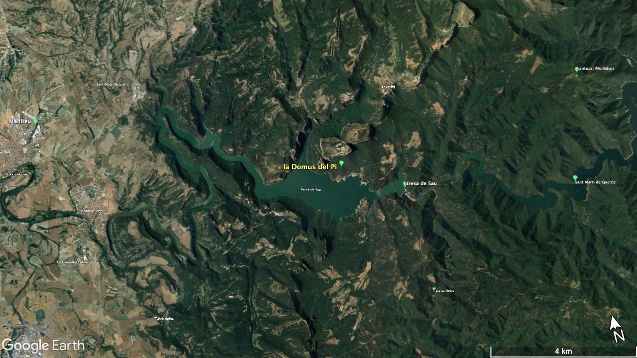 La Domus del Pi, antigament coneguda amb el nom de Cascabous, es trobava dins l’antic terme del castell de Cornil. El casal fou lloc de residència de la família de cavallers anomenada Sau.
