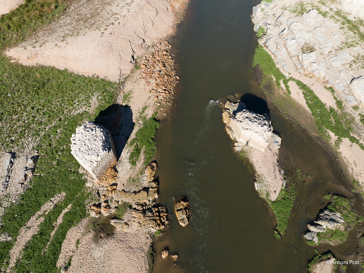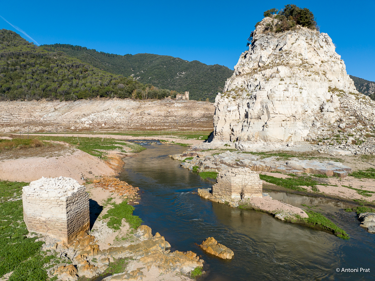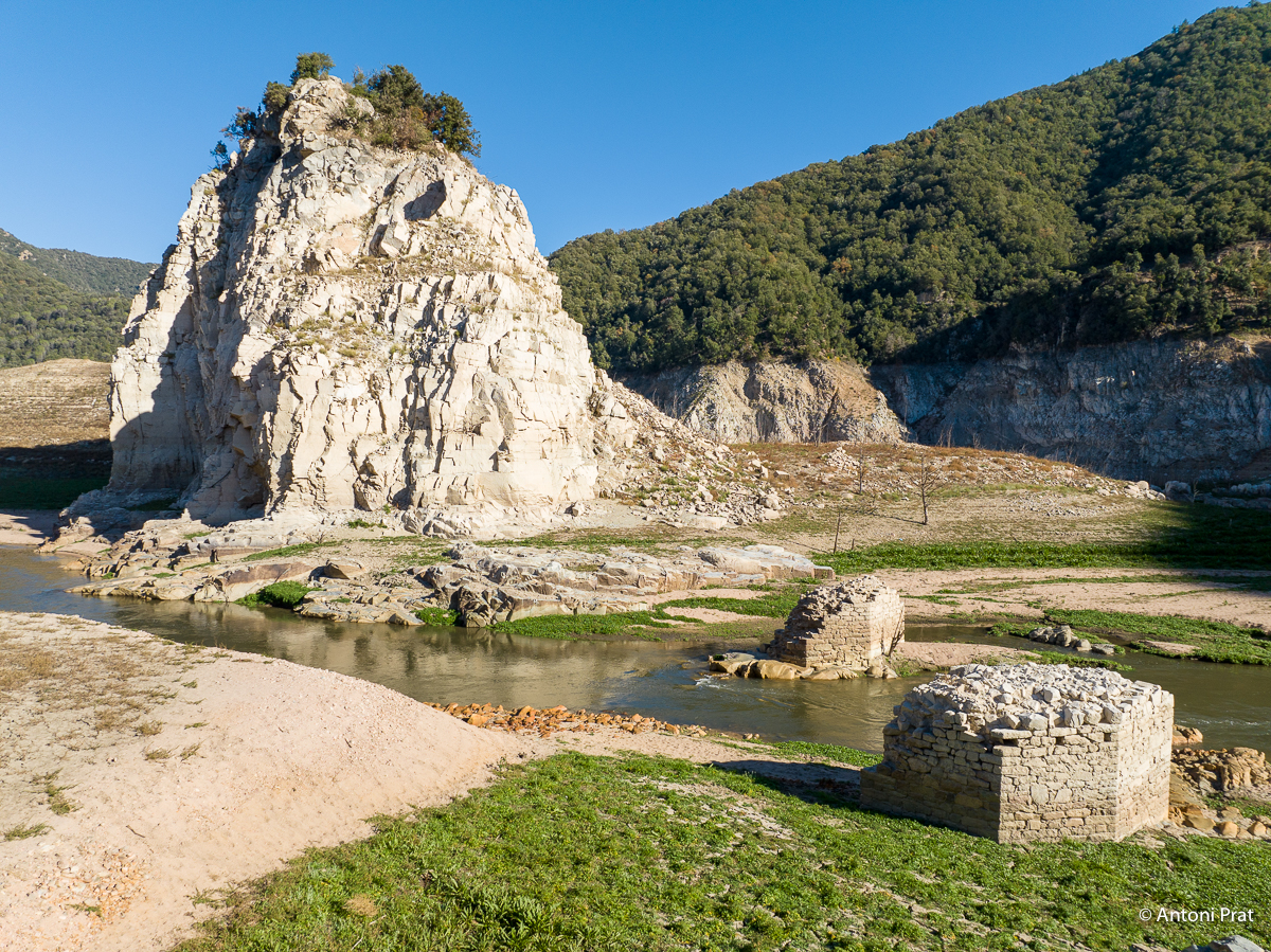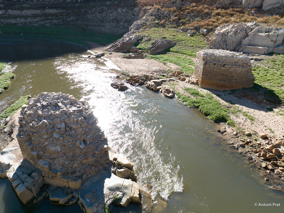 En queda tan sols la part inferior de les dues pilastres (el pont, per tant, tenia originalment tres ulls), fetes de pedra i morter i amb els forats dels xindris ben visibles. En el moment de la construcció del pantà de Susqueda, que el va negar, el pont ja estava en desús.