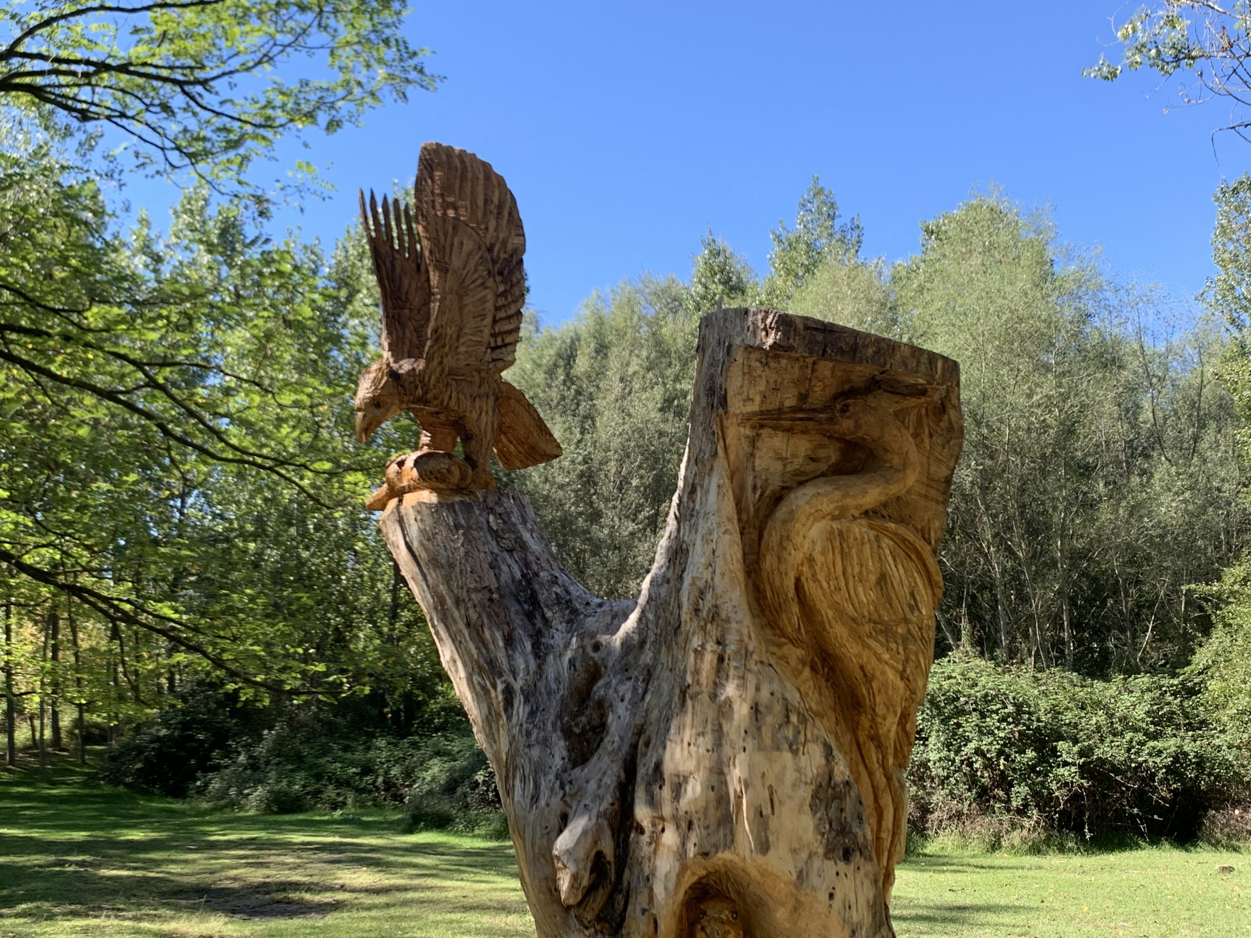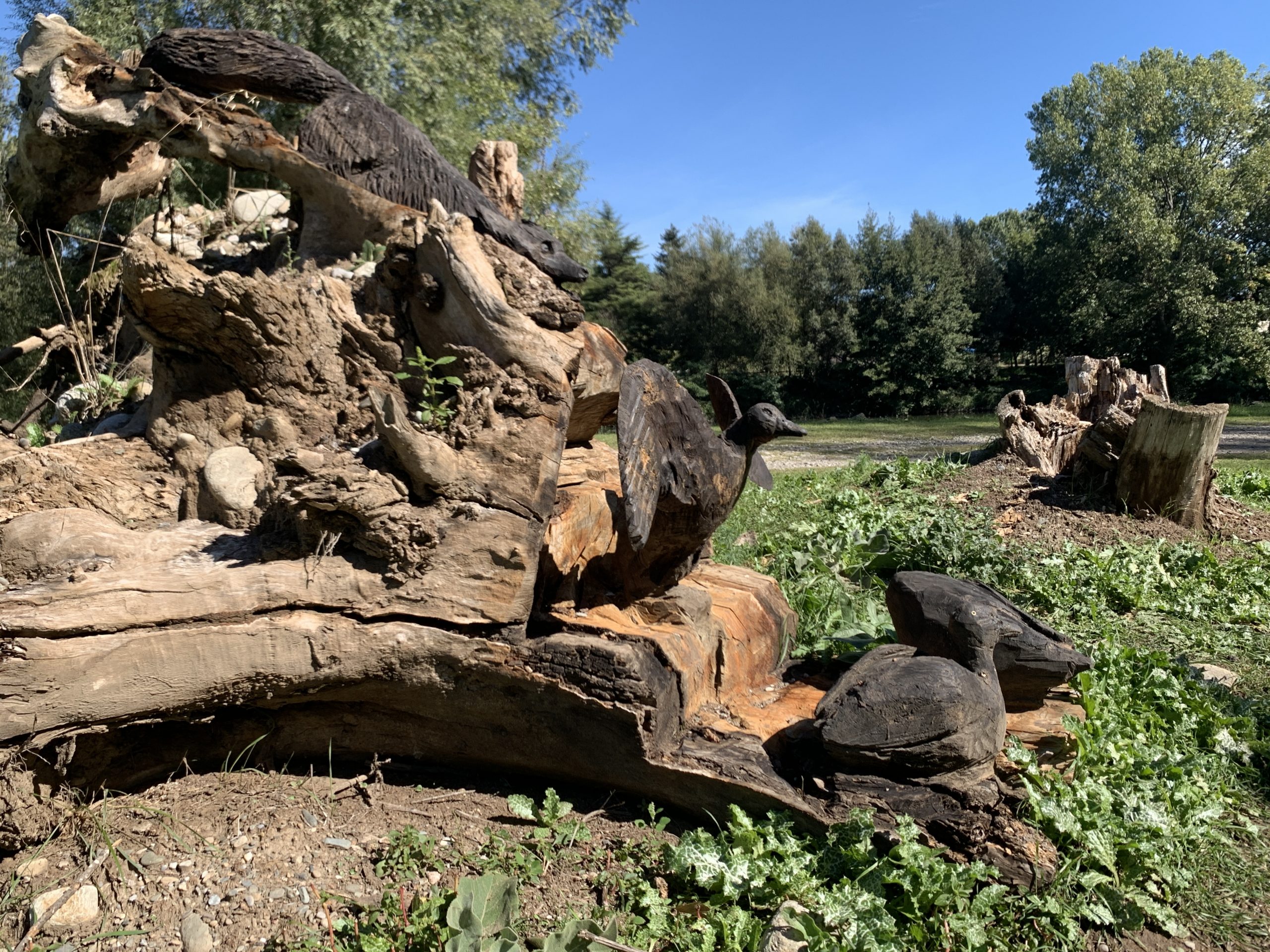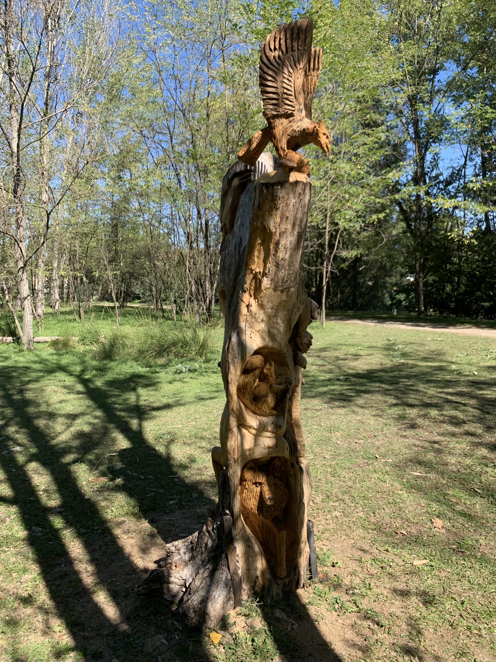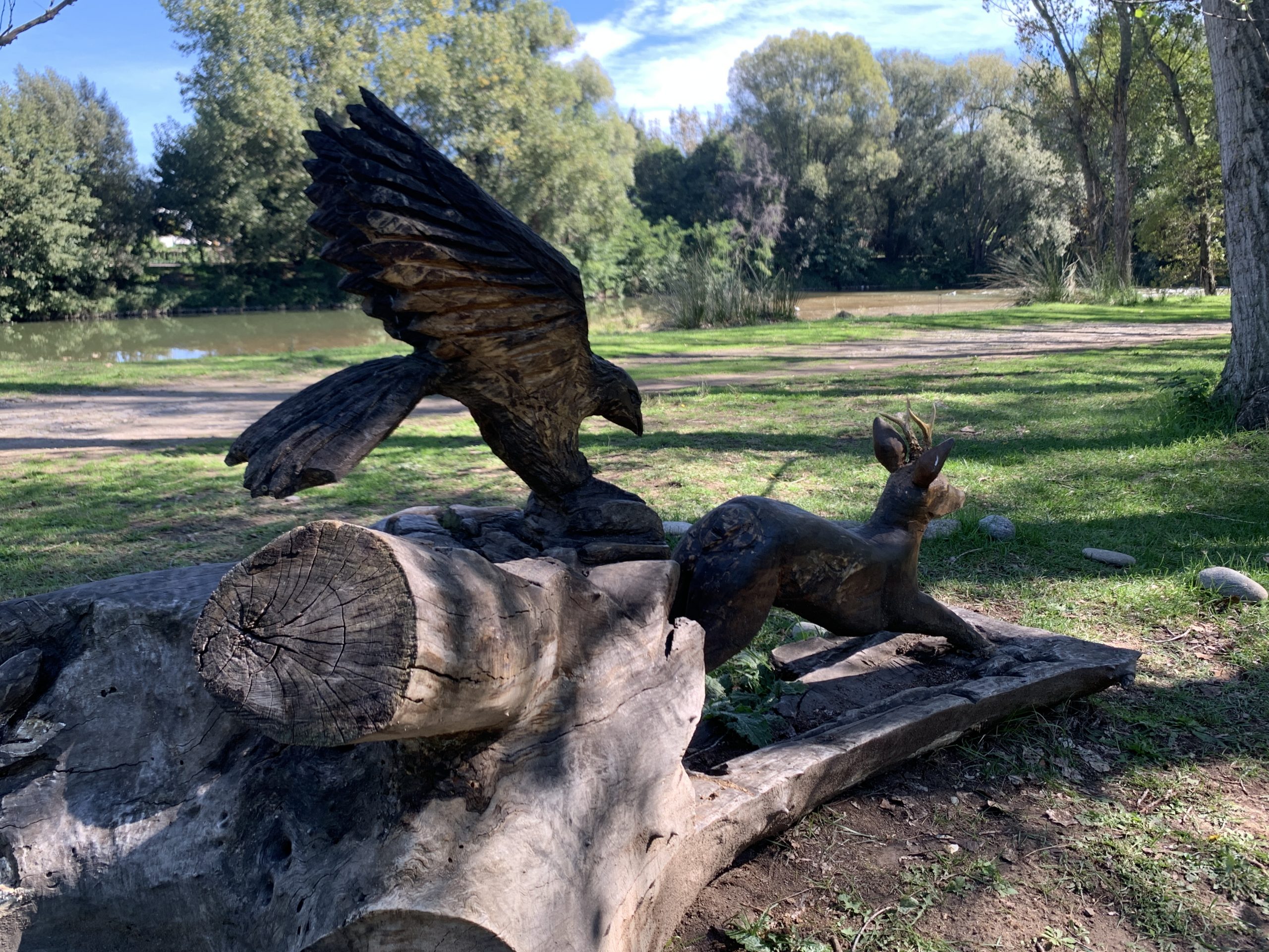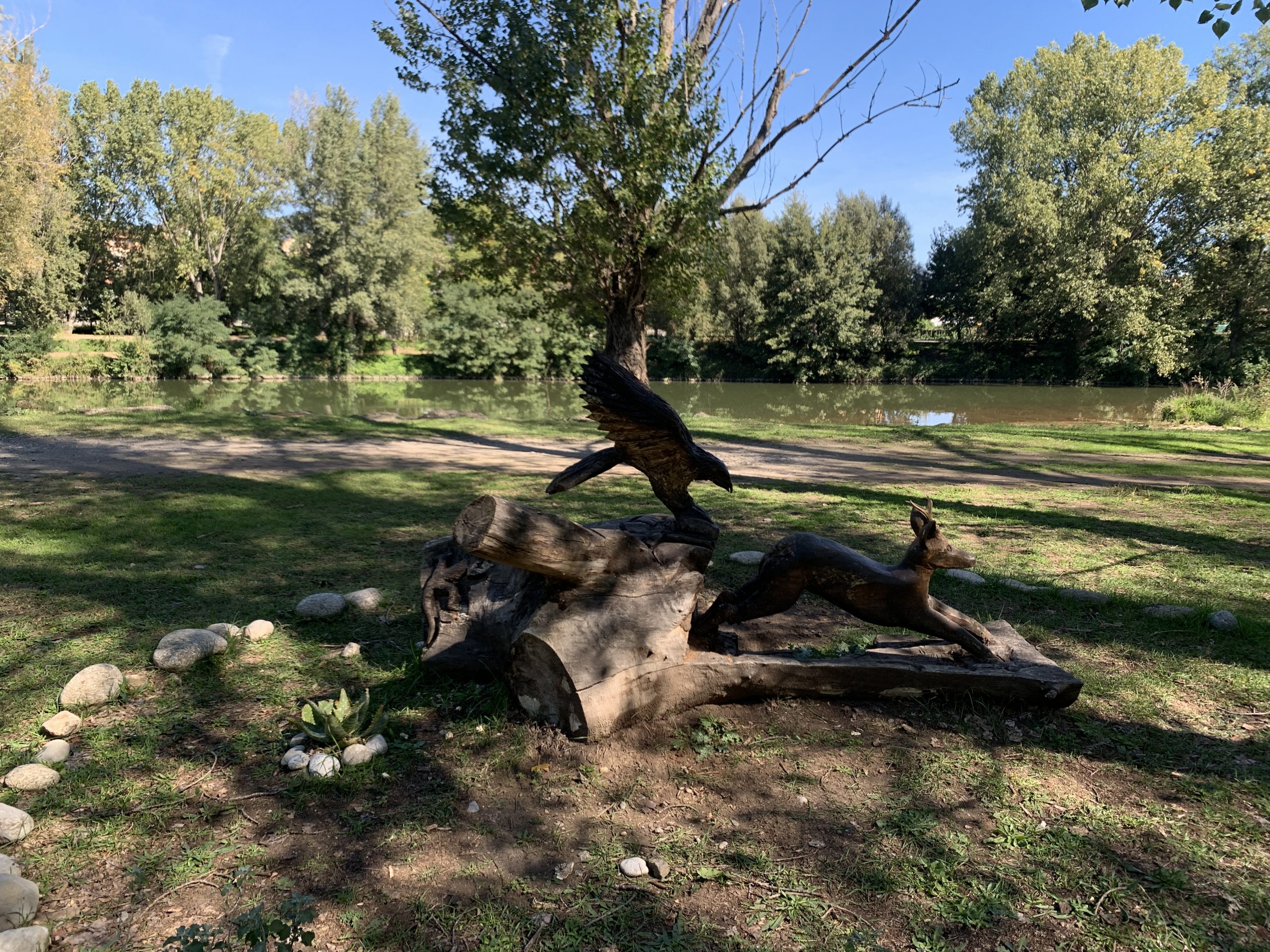 De forma desinteressasa i amb una motoserra, l’escultor de Montesquiu Pep Martínez -que treballa a Torelló- ha sigut capaç de transformar en autèntiques obres d’art una colla de troncs d’arbre que les grans riuades han anat deixant tirats a la vora del camí.