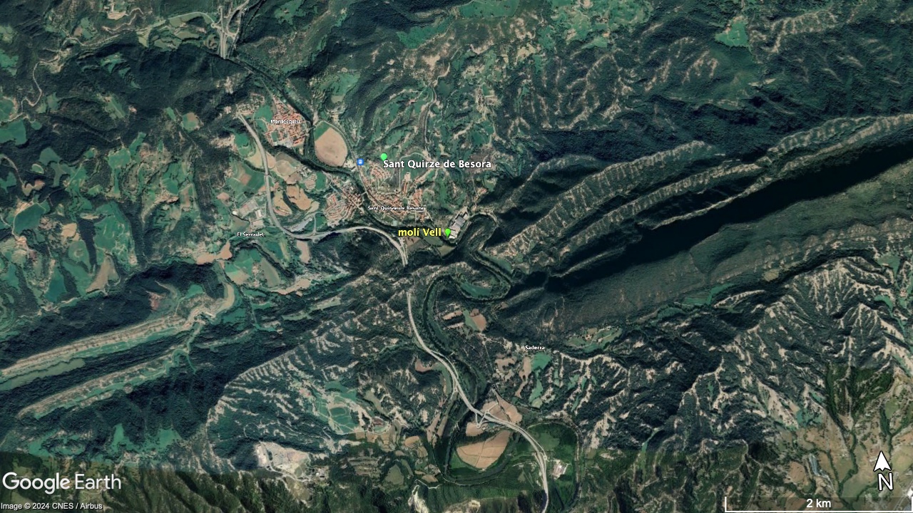 El Molí Vell de Sant Quirze de Besora es trobava a l’extrem d’una gran plana conreada que hi havia abans d’arribar al veïnat de Foradada, on avui hi ha el polígon del mateix nom.