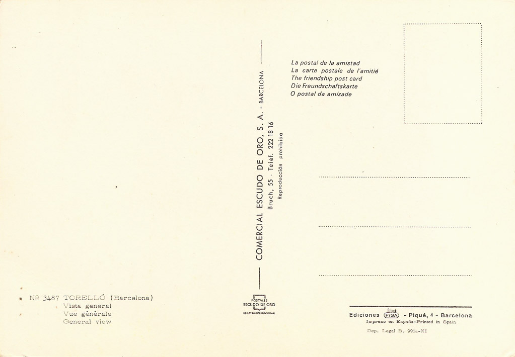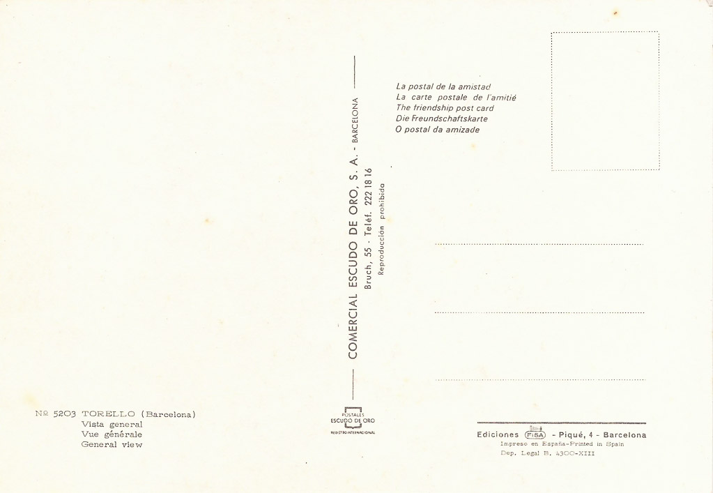 TORELLÓ: col·lecció de postals en color COMERCIAL ESCUDO DE ORO