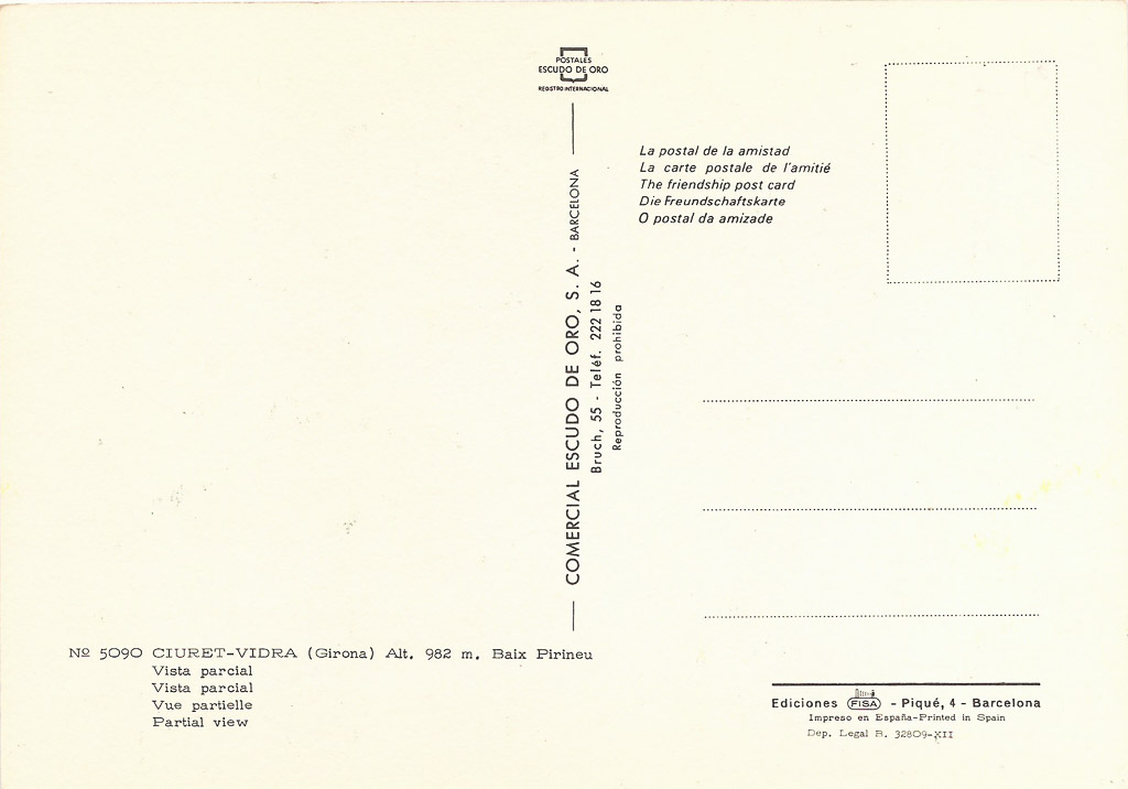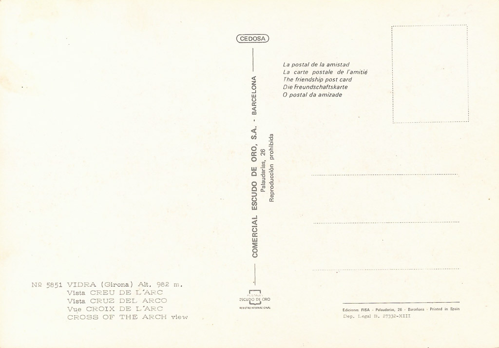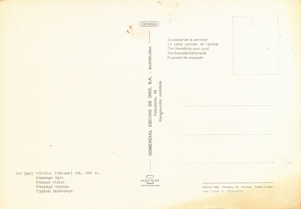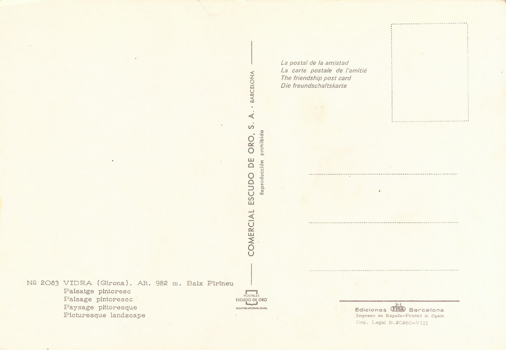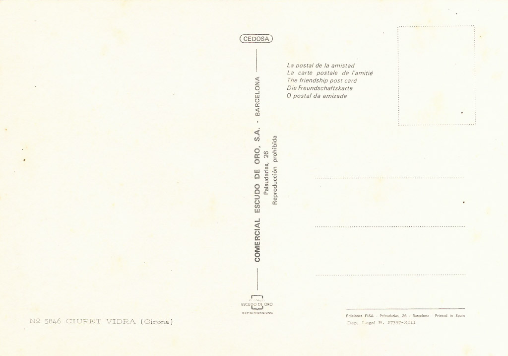 VIDRÀ: col·lecció de postals en color COMERCIAL ESCUDO DE ORO