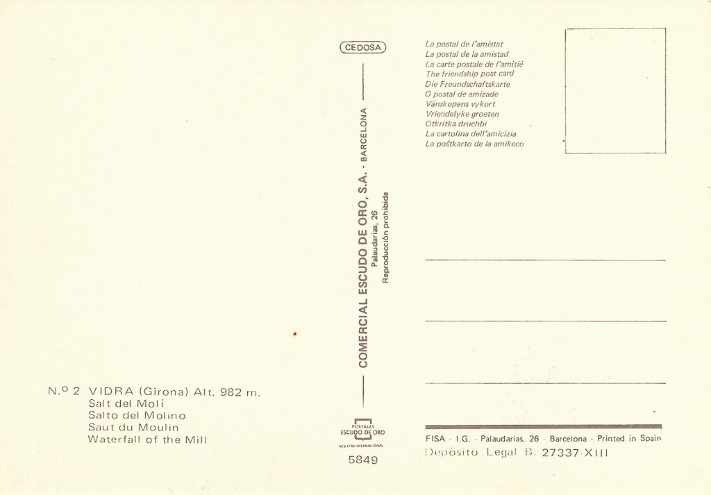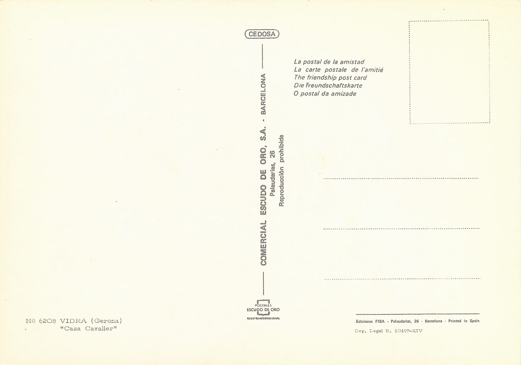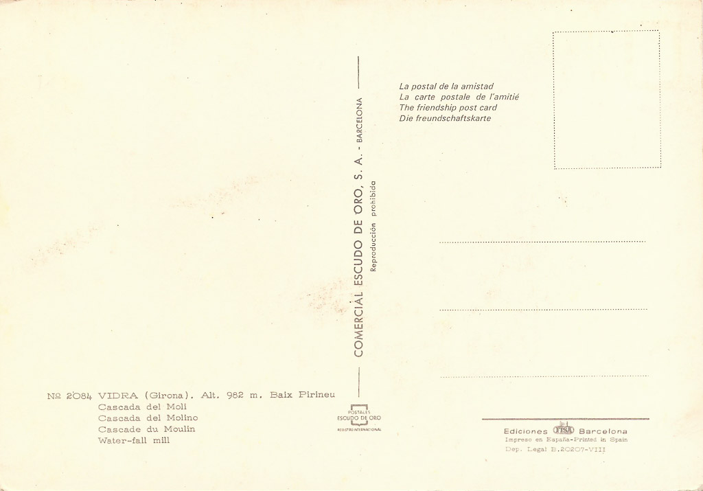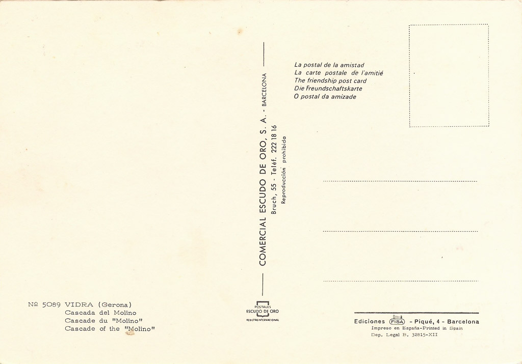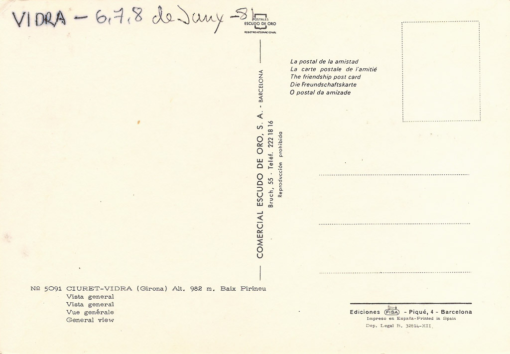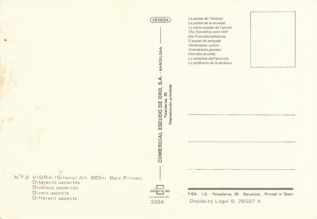 VIDRÀ: col·lecció de postals en color COMERCIAL ESCUDO DE ORO