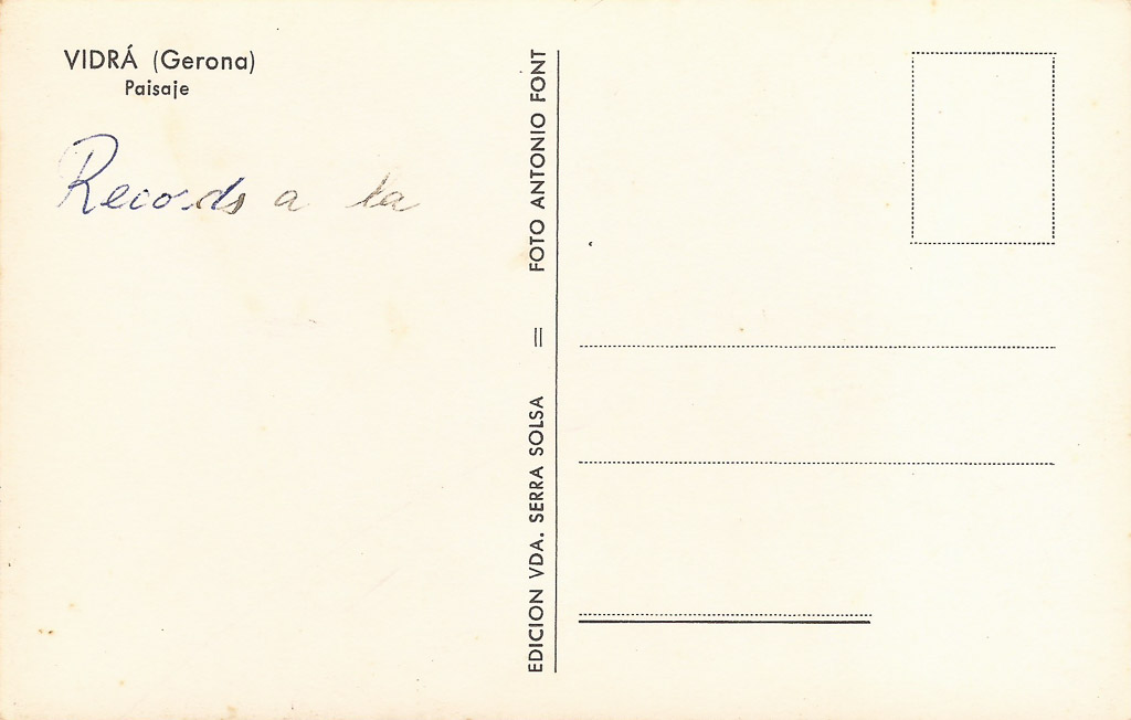 VIDRÀ: col·lecció de postals EDICION VDA. SERRA SOLSA - Foto ANTONIO FONT
